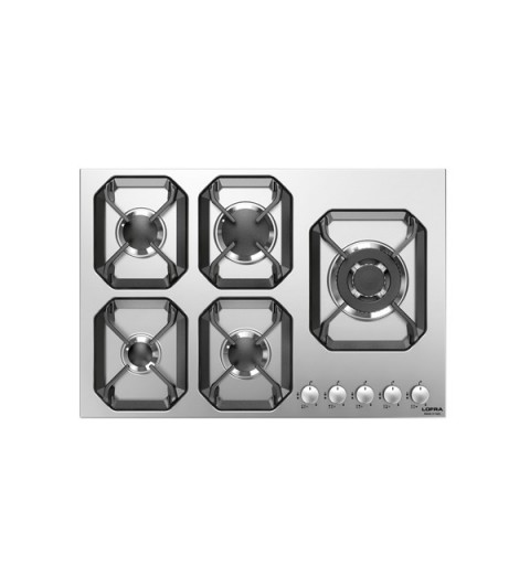 Lofra Urano 75. Conception de caisse: Intégré, Type de plaque: Cuisinière à gaz, Type de surface extérieure (dessus): Acier inoxydable. Type de commande: Rotatif, Position de contrôle: En haut à droite. Largeur: 750 mm