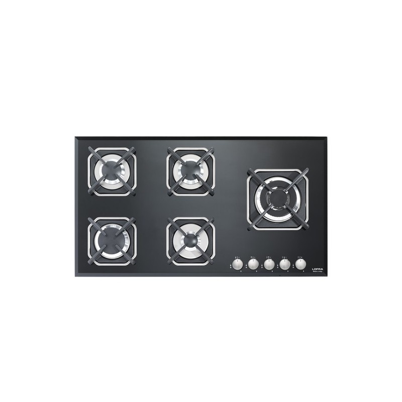 Lofra HGN950. Conception de caisse: Intégré, Type de plaque: Cuisinière à gaz, Type de surface extérieure (dessus): Verre. Type de commande: Rotatif, Position de contrôle: En haut devant. Largeur: 910 mm, Profondeur: 510 mm, Hauteur: 50 mm