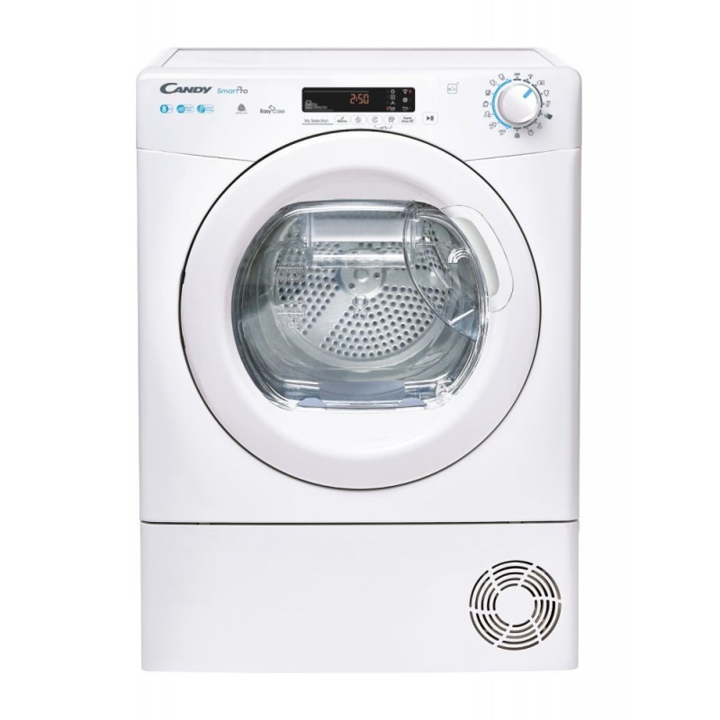 Candy Smart Pro CSOE H8A2DE-S, Autoportante, Charge avant, Pompe à chaleur, Blanc, Boutons, Rotatif, Gauche