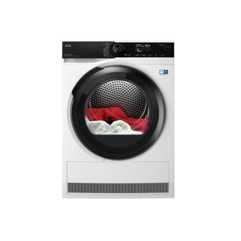 AEG TR9HG83B, Autoportante, Charge avant, Pompe à chaleur, Noir, Blanc, Rotatif, Noir, Transparent
