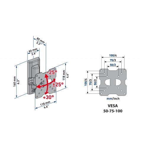 | Norme VESA | 50 x 50,75 x 75,100 x 100 |