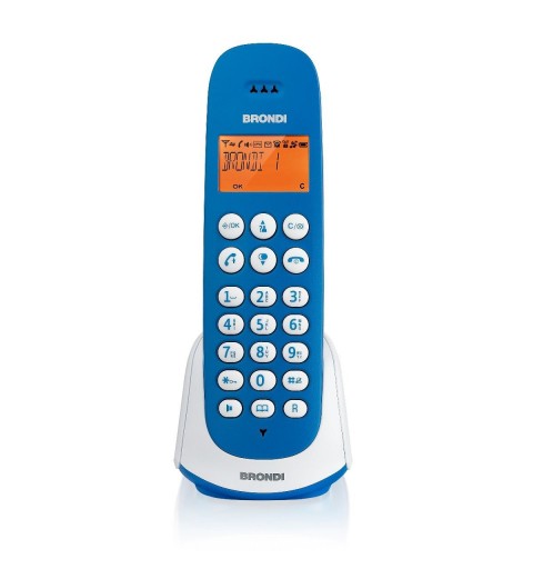 Brondi Adara, Téléphone DECT, Combiné sans fil, Haut-parleur, 20 entrées, Identification de l'appelant, Bleu, Blanc