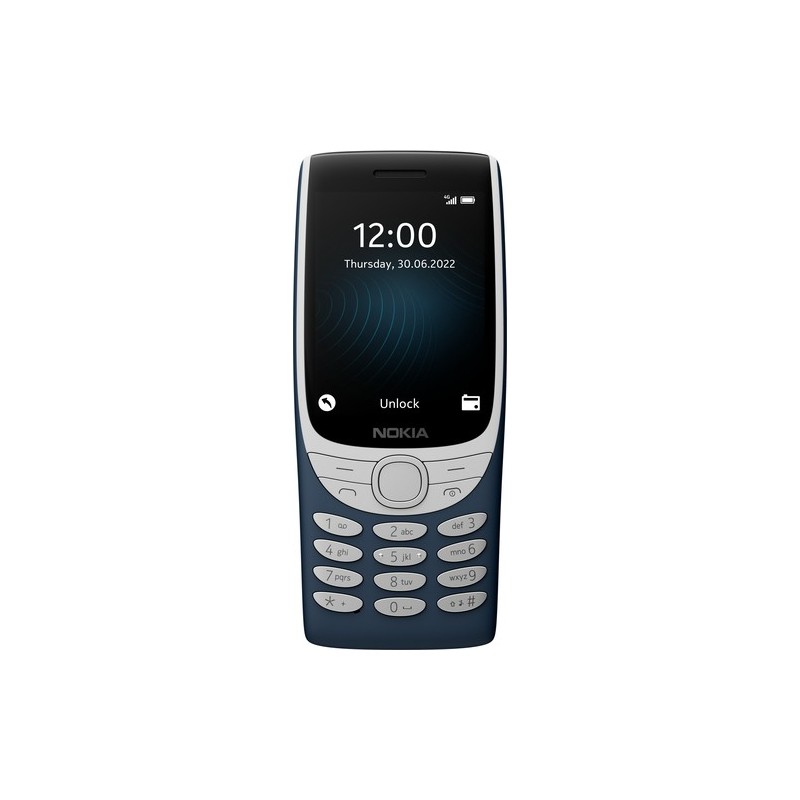 Nokia 8210 4G. Format: Barre. Capacité de la carte SIM: Double SIM. Taille de l'écran: 7,11 cm (2.8"), Résolution de l'écran: 240 x 320 pixels. Résolution de la caméra arrière (numerique): 0,3 MP. Bluetooth. Radio FM. Technologie batterie: Lithium-Ion (Li-Ion), Capacité de la batterie: 1450 mAh. Poids: 107 g. Couleur du produit: Bleu