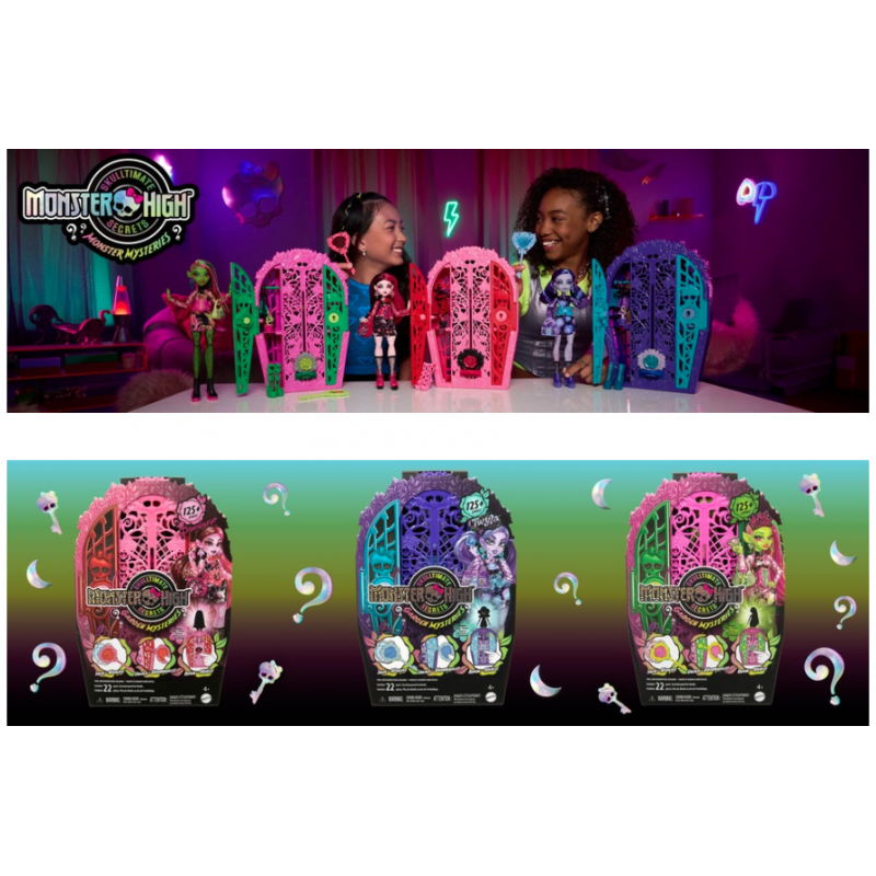 Résolvez le mystère, ouvrez les portes de Monster High et découvrez une poupée Monster High avec ce coffret Monstrueux Secrets : Énigmes du jardin ! Les enfants peuvent jouer à se faire peur en cherchant des indices sur la carte avec la loupe-clé « magique ». Ce faisant, ils découvriront plus de 19 surprises pour une expérience de déballage extraordinaire ! Une fois le jeu terminé, les enfants à partir de 4 ans peuvent glisser la poupée, les vêtements et les accessoires inclus dans le dressing, qui est parfait pour inventer des histoires comme pour tout ranger ! Articles vendus séparément. Certains produits peuvent ne pas être commercialisés. Poupée entièrement articulée. Les poupées ne tiennent pas debout toutes seules. Les couleurs et les décorations peuvent varier.