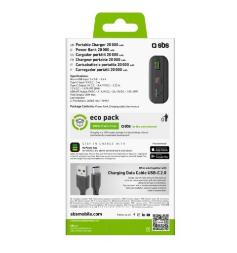 SBS TTBB20000PD20K batteria portatile Polimeri di litio (LiPo) 20000 mAh Nero