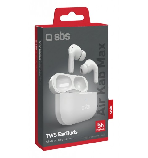 SBS Air Kab Max, True Wireless Stereo (TWS), 20 - 20000 Hz, Musica e Chiamate, 50 g, Auricolare, Bianco
