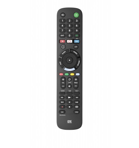 One For All TV Replacement Remotes URC 4912. Compatibilità marca: Sony, Utilizzo appropriato telecomando: TV, Interfaccia: IR Wireless. Numero di dispositivi supportati: 1. Tipo di ingresso: Pulsanti. Funzione Televideo
