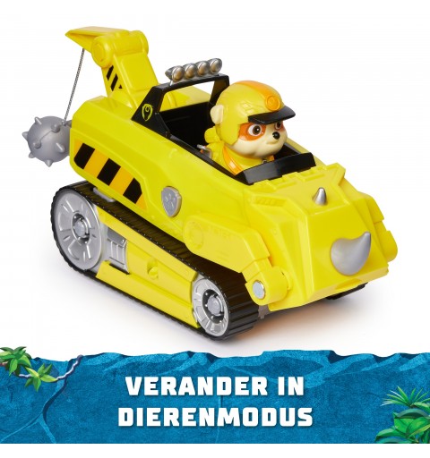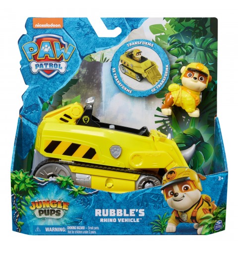 PAW Patrol Jungle Pups, Rhino Vehicle di Rubble, veicolo giocattolo con action figure da collezione, giocattoli per bambini e