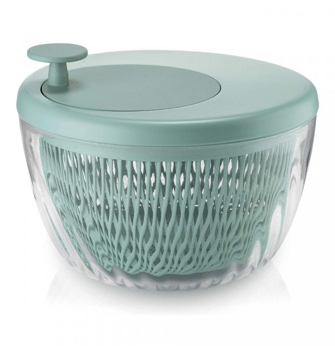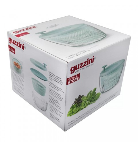 Centrifuga per insalata Spin&Store lava e asciuga l'insalata e tutte le verdure a foglia grande in modo rapido ed efficace. Dal design compatto, il suo contenitore, può diventare un'elegante insalatiera da portare in tavola. Il cestello all'interno è dotato di piedini che lo tengono sollevato dalla base del contenitore: questo particolare permette di utilizzare la centrifuga anche come contenitore per scongelare i cibi che, restando sollevati dal fondo grazie ai piedini, non rimangono bagnati. La centrifuga è inoltre dotata di un coperchio salvafreschezza che, applicato al contenitore, permette di conservare in frigo le verdure.