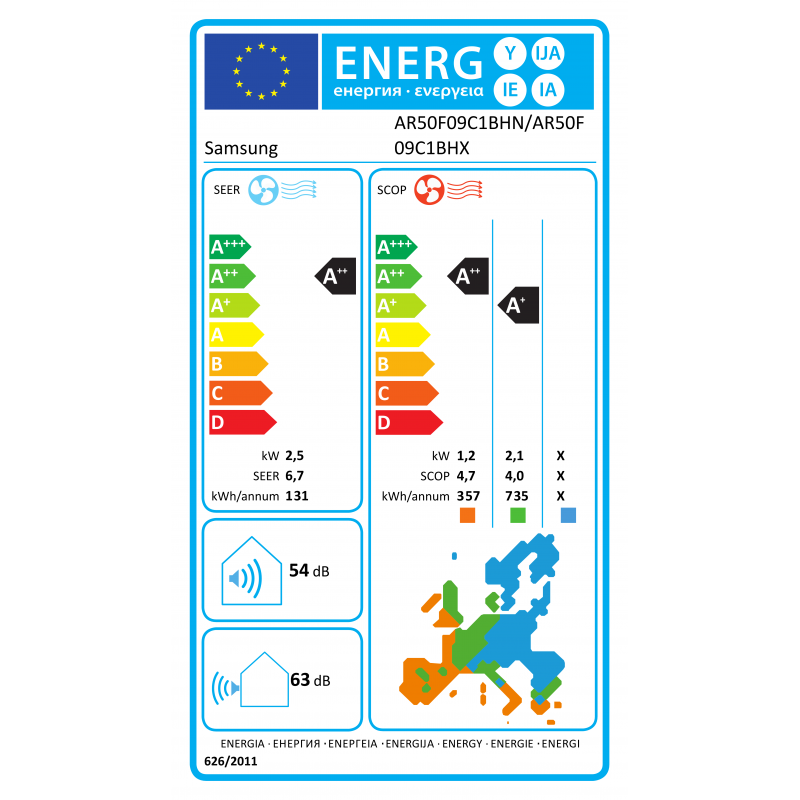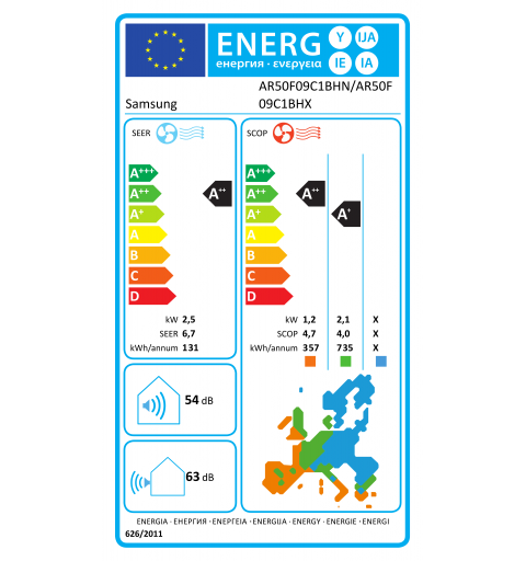 Samsung F-AR09LZ2 Luzon S2 Monosplit 9000BTu Kit AR50F09C1BHXEU + AR50F09C1BHNEU condizionatore fisso, Climatizzatore split system, Bianco, Raffreddamento, Deumidificazione, Ventilatore, Riscaldamento, 2500 W, Mono split, 25 mq