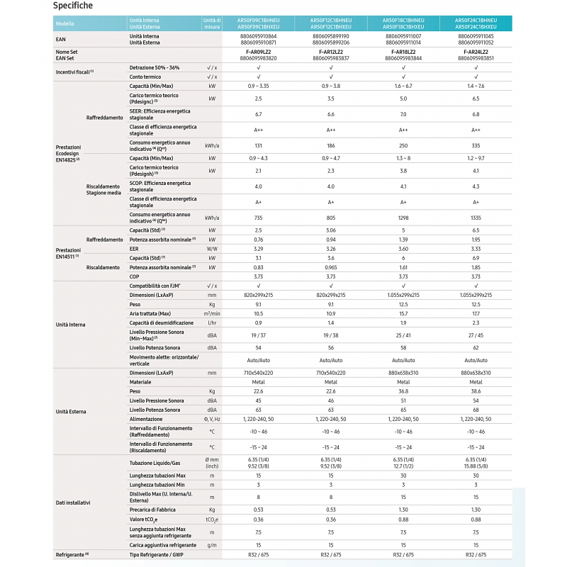 Samsung F-AR12LZ2 Climatizzatore Luzon S2 12000Btu Inverter A++/A+ R32 Condizionatore Kit AR50F12C1BHXEU + AR50F12C1BHNEU