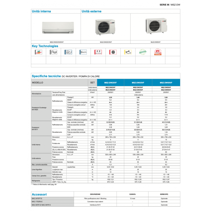 | Unità interna | MSZ-DW25VF |