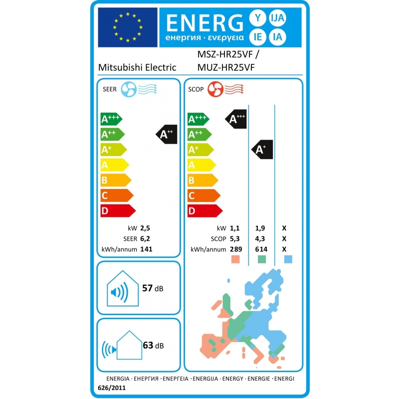 Mitsubishi MSZ-HR25VFE Kit MUZ-HR25VF+MSZ-HR25VFE1 Condizionatore Climatizzatore 9000btu 2.5Kw Inverter A++/A+ wifi ready R32