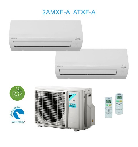 Climatizzatore Dual Split Daikin con tecnologia Inverter e potenza da 9000+12000 BTU, (Unità Interna: ATXF25A + ATXF35A; Unità Esterna: 2AMXF40A Unitnuovo Gas Ecologico R-32 rispetta l'ambiente)