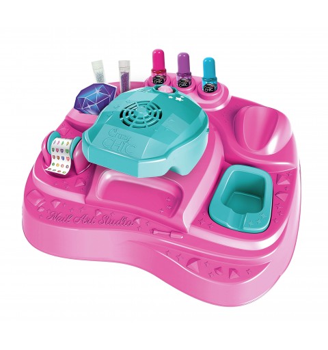 Una nuovissima e innovativa console dal design moderno ed ergonomico per le super Nail Artists del futuro! Le macchine spara glitter e asciuga smalto garantiscono look davvero alla moda e di tendenza. Il kit contiene gli smalti Crazy Chic, adesivi per unghie e polvere glitter colorata per decorazioni super Glam! Un gioco creativo, moderno e originale per decorare le unghie con uno stile cool da vera Crazy Girl! Un concept sempre di tendenza che stimola la creatività e la manualità delle bambine.