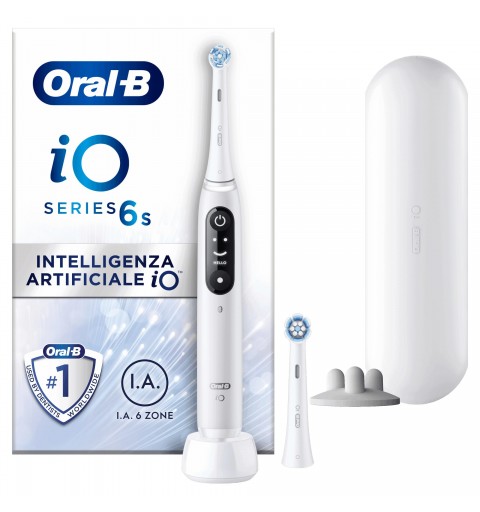 Oral-B iO 6, Adulto, Spazzolino a vibrazione, Cura quotidiana, Pulito profondo, Cura gum, Sensibile, Sbiancante, Bianco, 2 min, Bianco