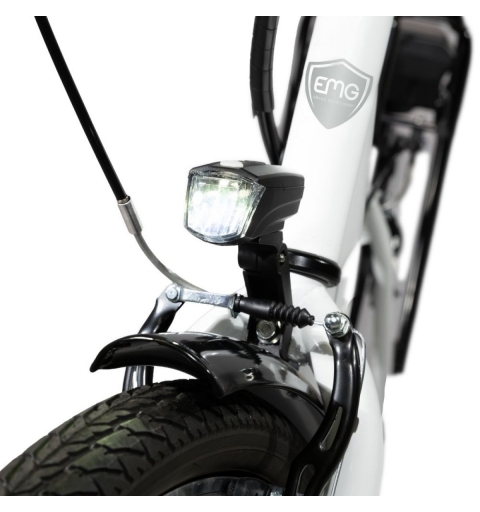 EMG Sea-TY. Tecnologia batteria: Litio, Capacità della batteria: 12,8 Ah, Voltaggio della batteria: 36 V. Peso (batteria inclusa): 26,5 kg, Larghezza: 130 mm, Profondità: 1780 mm. Materiale del telaio: Acciaio, Materiale forcella anteriore: Acciaio, Cambio: Shimano. Larghezza imballo: 180 mm, Profondità imballo: 1830 mm, Altezza imballo: 1070 mm. Paese di origine: Italia