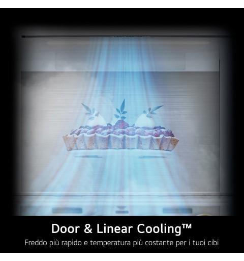 Il sistema Door Cooling™ integra una bocchetta supplementare posta nella parte superiore per raffreddare più velocemente e più efficacemente le zone del frigo, compresa quella della porta. La nostra tecnologia Linear Cooling™ mantiene la temperatura del frigo costante, con scostamenti di solo ±0,5°C. Grazie a queste due tecnologie, puoi conservare i tuoi cibi più a lungo mantenendone la freschezza.