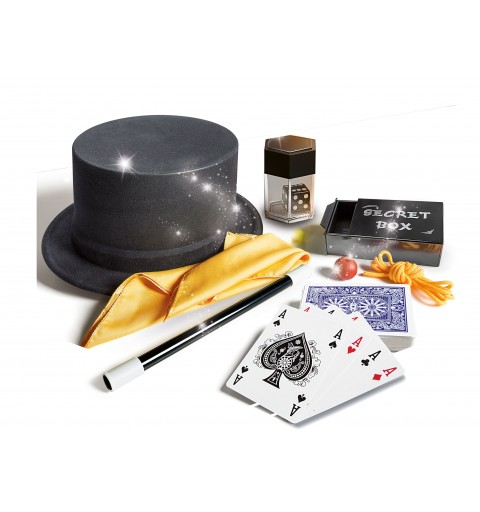 | Contenuto della confezione | Carte, dadi, scatola magica, cappello magico, accessori, manuale illustrato. |
