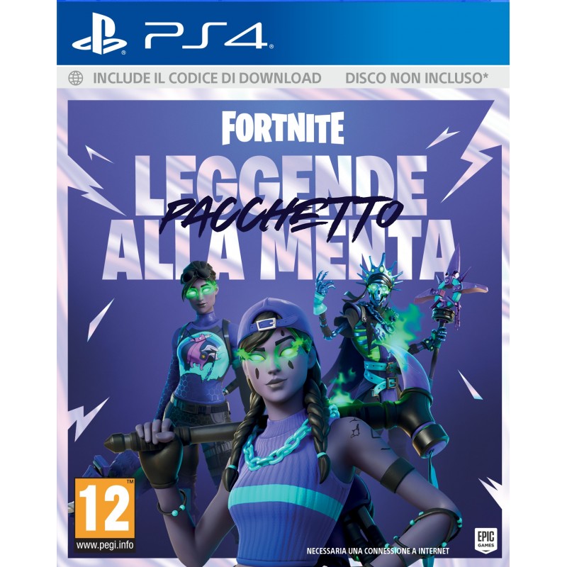 Take-Two Interactive Fortnite Leggende alla Menta Pacchetto. Edizione gioco: Legendary, Piattaforma: PlayStation 4, Modalità multiplayer, Classificazione ESRB: T (Teen), Classificazione PEGI: 12, Sviluppatore: Epic Games, Data di rilascio: 02/11/2021, Tipo di distribuzione: Supporto fisico