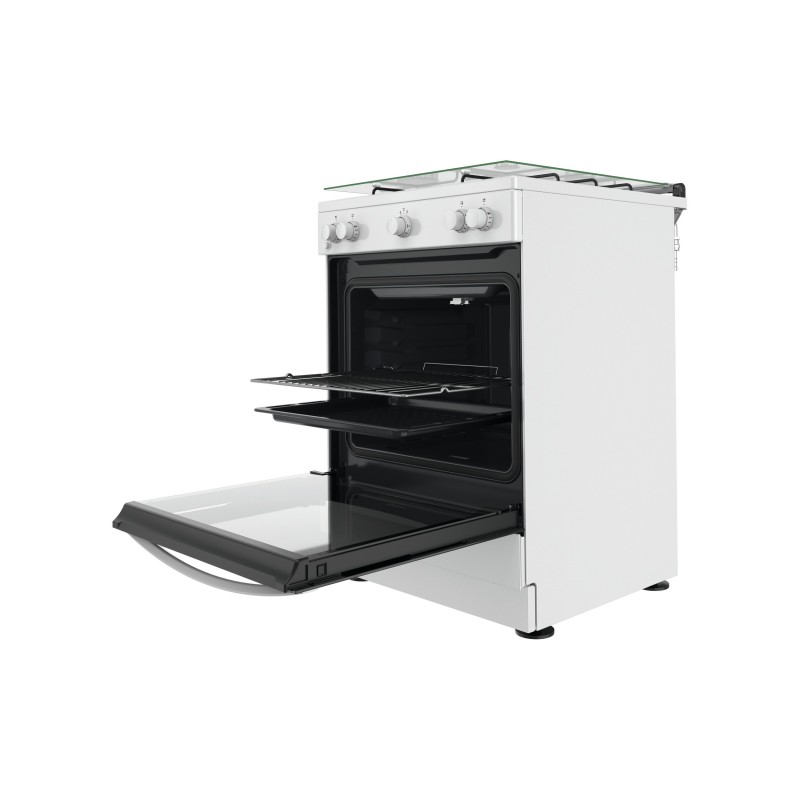 Caratteristiche di questa cucina a libera installazione 60 x 60 Indesit: 4 fuochi. Colore bianco. Alimentazione a gas. 60 cm di larghezza.