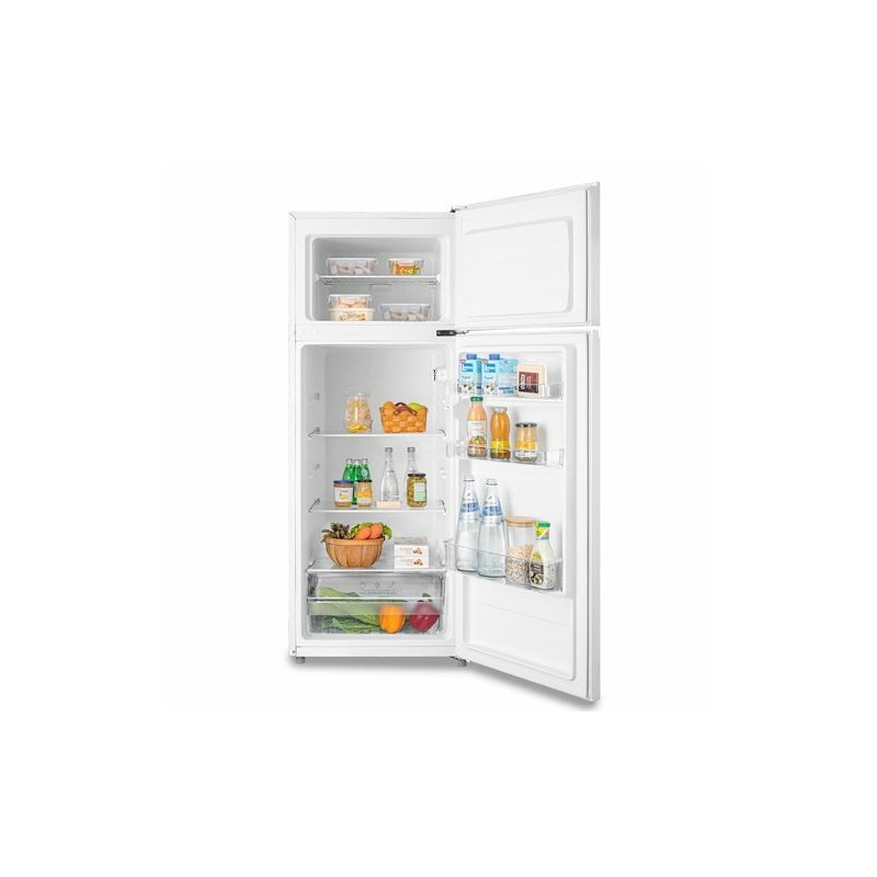 Comfeè RCT284WH2A. Posizionamento dell'apparecchio: Libera installazione, Colore del prodotto: Bianco, Cerniera porta: Destra. Capacità netta totale: 204 L, Classe climatica: N-ST, Emissione acustica: 40 dB. Capacità netta frigorifero: 163 L. Posizione del congelatore: Posto in alto, Capacità netta congelatore: 41 L, Capacità di congelamento: 2 kg/24h. Classe efficienza energetica: E, Consumo energetico annuo: 219 kWh, Scala di efficienza energetica: Da A a G