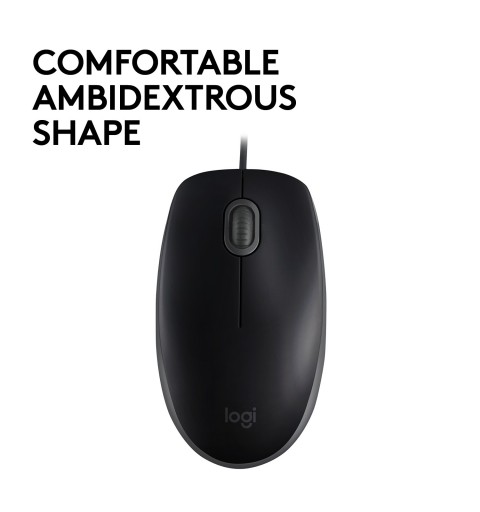 Logitech B110 Silent. Fattore di forma: Ambidestro. Tecnologia di rilevamento del movimento: Ottico, Interfaccia dispositivo: USB tipo A, Risoluzione movimento: 1000 DPI, Tipo di pulsanti: Tasti premuti, Numero di tasti: 3, Tipo di scorimmento: Rotella. Alimentazione: Cavo. Colore del prodotto: Nero
