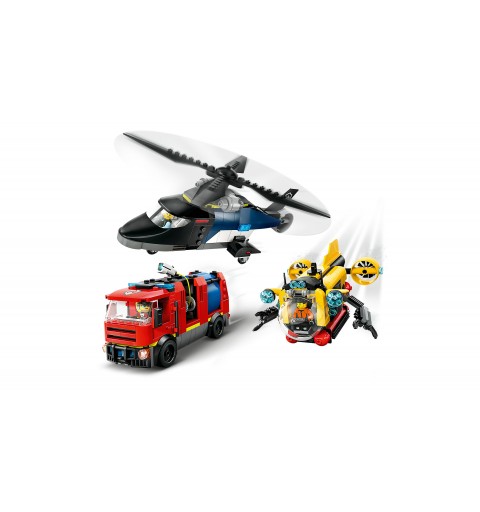 Funzioni divertenti per un gioco realistico: include un sottomarino giocattolo con bracci articolati snodabili, un elicottero della polizia con rotore principale e di coda funzionanti e un camion dei pompieri con manichetta estensibile