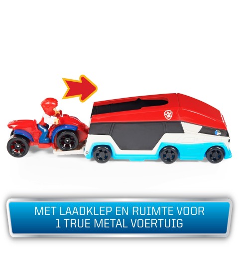 Questo Paw Patroller die-cast è la versione in metallo più grande di sempre, con una lunghezza di oltre 12,7 cm, ed è dotato anche di un quad di Ryder in scala 1:55, che può essere caricato direttamente all’interno del Paw Patroller. Abbassa la rampa di carico sul retro e fai salire il quad di Ryder direttamente sulla rampa per entrare nel veicolo. Chiudi la rampa e parti per una serie di missioni di salvataggio. Il PAW Patroller die-cast può contenere tutti i veicoli in metallo in scala 1:55 PAW Patrol della tua collezione (auto giocattolo aggiuntive in vendita separatamente). I bambini dai 3 anni in su potranno vivere tantissime missioni di salvataggio ricche d'azione con questo PAW Patroller. Per altre avventure di salvataggio ad alta velocità, cerca il Camion dei Pompieri die-cast (in vendita separatamente). I veicoli PAW Patrol in vero metallo sono un buon regalo per i fan di PAW Patrol.