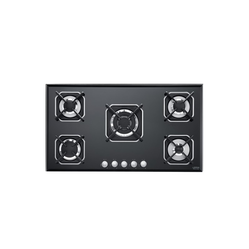 Lofra Hgn9E0 Marte 90 Black Piano Cottura Valvolato 90Cm Con Finitura In Vetro - 5 Fuochi A Gas Valvolati Di Cui 1 Tripla Coron