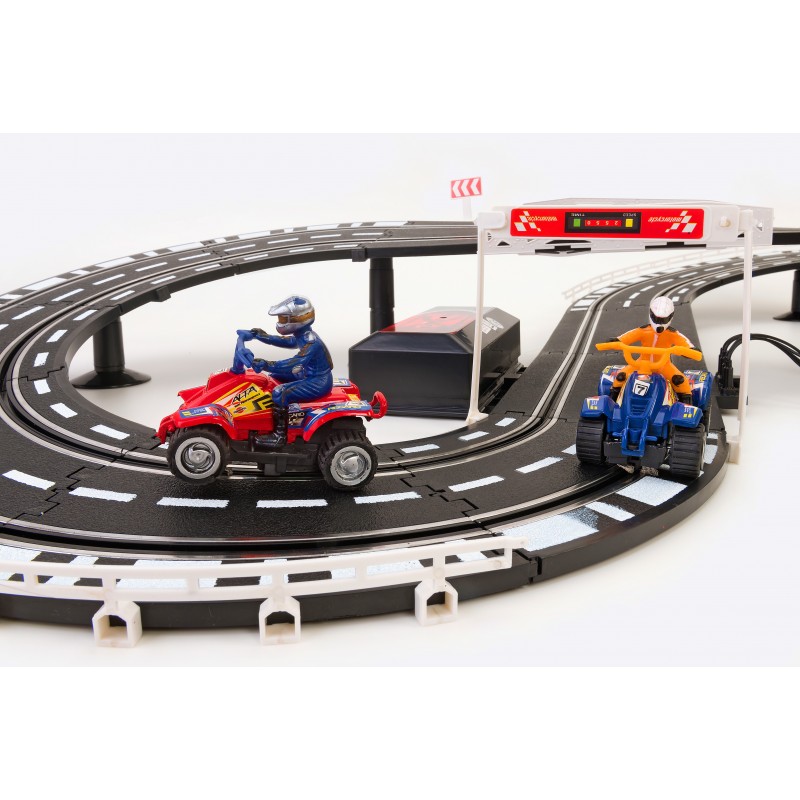 Spidko Pista Quad a batterie, 286 cm, scala 1:24. Tipo di prodotto: Set di veicoli e piste, Età consigliata (min): 5 anno/i. Tipo batteria: D, Numero di batterie: 4. Materiali: Plastica, Colore del prodotto: Multicolore