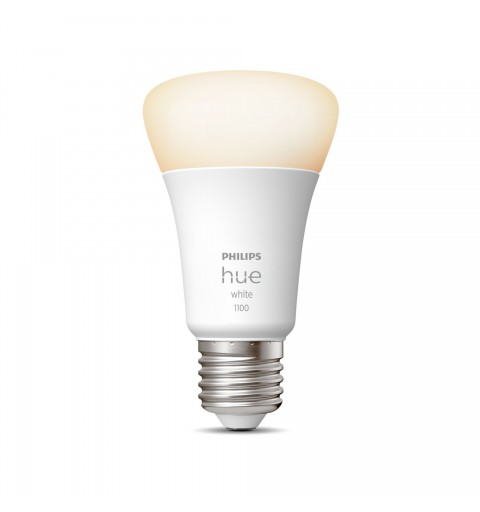Philips Hue White E27 - confezione da 1. Tipo: Lampadina intelligente, Colore del prodotto: Bianco, Interfaccia: Bluetooth/Zigbee. Classe efficienza energetica: F, Consumi (modalità stand-by): 0,43 W, Consumo energetico (max): 9,5 W. Larghezza: 61 mm, Profondità: 61 mm, Altezza: 110 mm. Larghezza imballo: 72 mm, Profondità imballo: 72 mm, Altezza imballo: 14 mm. Quantità per pacco: 1 pz, Numero di lampadine hue incluse: 1 lampadina(e)