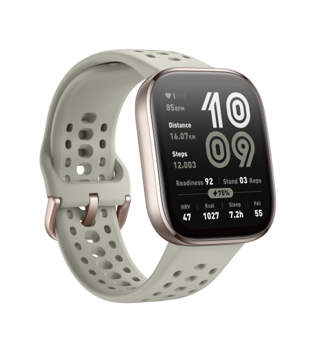 Amazfit Bip 6 Stone. Dimensioni diagonale schermo: 5 cm (1.97"), Tecnologia display: AMOLED, Risoluzione del display: 390 x 450 Pixel, Touch screen. Capacità RAM: 64 MB, Memoria flash: 512 GB. GPS (satellitare). Capacità della batteria: 340 mAh. Peso: 27,9 g. Materiale cinturino: Silicone, Colore cinturino: Grigio. Sistema operativo incluso: Amazfit OS