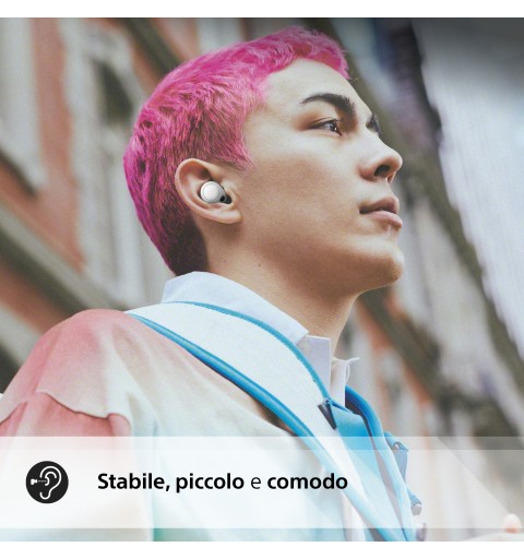 Le cuffie Sony WF-C700N True Wireless Noise Cancelling sono state progettate pensando al tuo comfort, con un design ergonomico della superficie che si adatta perfettamente all'orecchio per una vestibilità più stabile.
