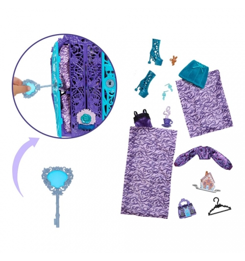 Scopri i segreti dietro le porte di Monster High con i set con guardaroba Segreti da Brivido: I misteri in giardino! Ognuno include una bambola e abiti e accessori a tema tea party. Uno spaventoso tea party attende le mostramiche, ma sembrano sparite nel nulla! Cerca indizi per scoprire la loro posizione e oltre 19 sorprese in 3 fasi spettracolari: risolvi, sblocca, rivela. Fase uno Utilizza la chiave con lente di ingrandimento per visualizzare i simboli sulla mappa del tesoro. Quando i bambini sbloccheranno le ante del guardaroba, troveranno dei ciondoli che corrispondono ai simboli della mappa! Questi ciondoli sono nascosti tra gli abiti da urlo e le sorprese degli accessori. Unisci i 3 ciondoli per creare un talismano misterioso. nserisci il talismano alla base del guardaroba, quindi aprilo come fosse una cerniera per rivelare una bambola Monster High in tutta la sua gloria mostruosa! Ripercorri le fasi quante volte vuoi, per un divertimento senza fine. Ognuna in vendita separatamente, secondo disponibilità. Completamente snodata. Le bambole non possono reggersi in piedi da sole.